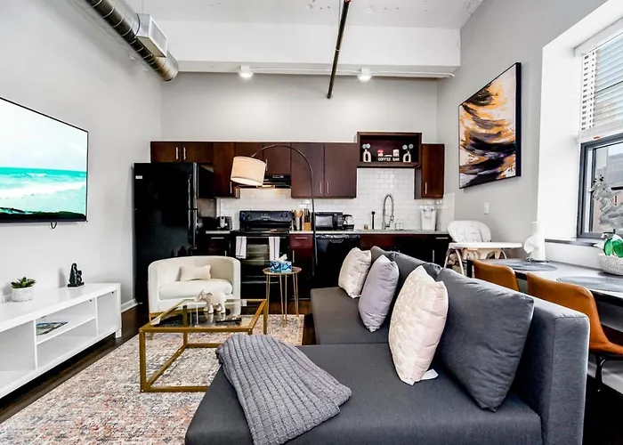 Localizado a aproximadamente 25 minutes a pé do Centro Comercial Crown Center, o apartamento Chic 1Br Parking, Rooftop, Near Arrowhd & Tmobile Kansas City de 1 quartos dispõe de parque de estacionamento privado gratuito para aqueles que viajam de carro. O Aquário Sea Life fica a uma distância de 2.1 km deste apartamento, enquanto a estação de autocarros 12th at Washington está muito perto da propriedade.